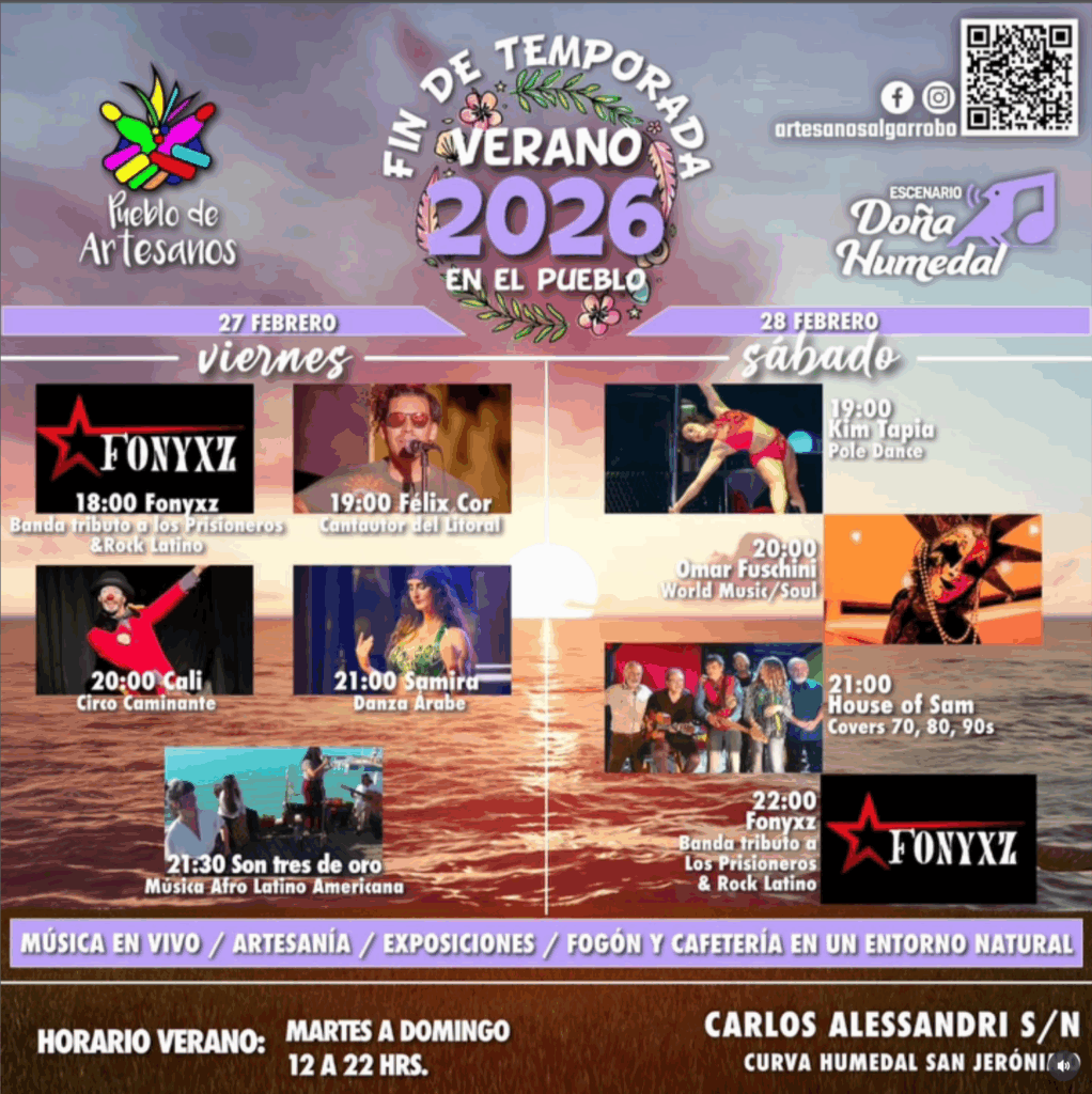 El último fin de semana de febrero llega con una imperdible programación artística en el Pueblo de Artesanos de Algarrobo, una invitación a despedir el verano en un entorno natural, con grato ambiente, artesanía local, cafetería y música en vivo.
