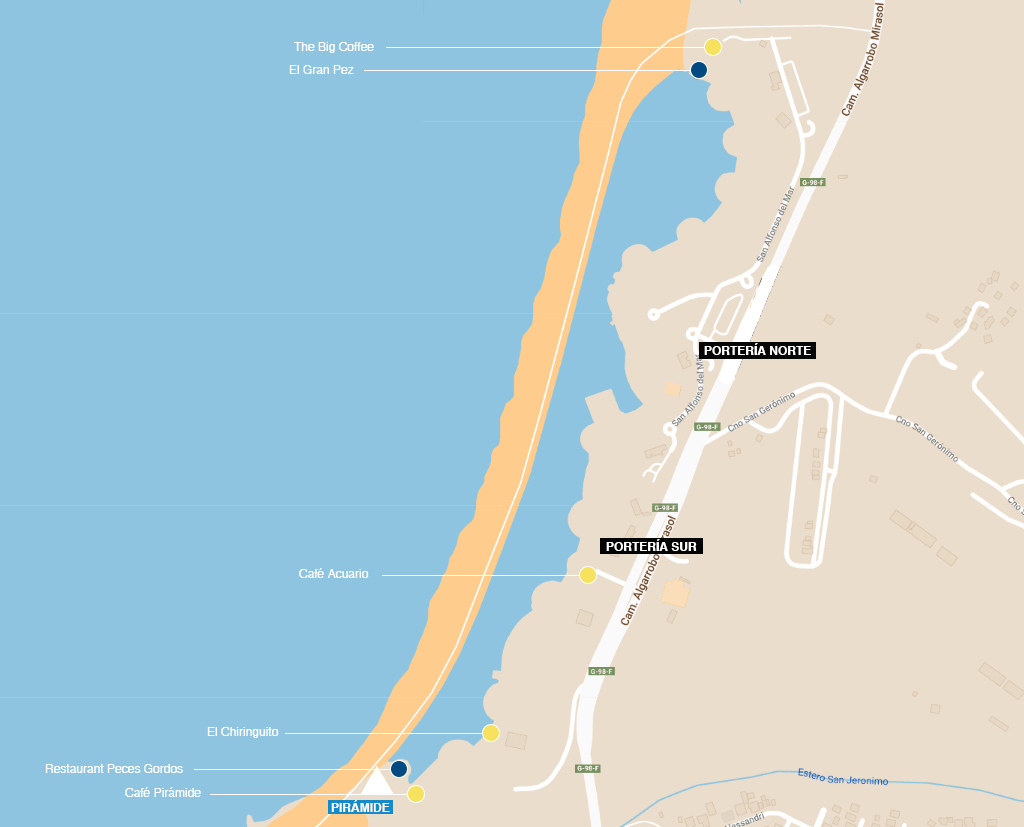 Disfruta de una cuidada propuesta de pescados y mariscos de la zona, tales como locos, ostras, camarones, pulpos, se combina con una refrescante coctelería, que incluye su delicioso pisco sour, en el sector Sur de San Alfonso del Mar.
